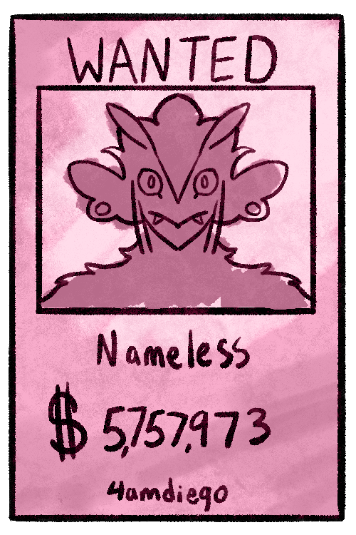 Over the years I’ve gotten really lucky with attacks so this year I wanted to do my best to share the love! You’ve likely come here from one of the social media posts about the subject that I’ve made but if not, this is a small and very silly project designed to help promote some characters who’s owners could use a little extra TLC this year. Each wanted poster will link you to a cool character YOU could be drawing this Artfight! Feel free to save and share a few to help spread the love.